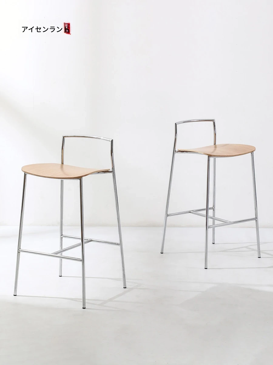 アイセンラント工業風バースツール - 北欧スタイルの木製ハイチェア、アイアン製バー前台用、カフェに最適なデザイン!おしゃれで機能的な空間を演出します。