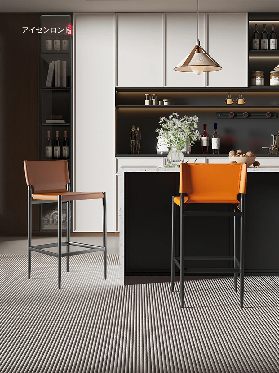 アイゼンラント馬鞍レザーバー台椅子 - イタリアンミニマリズムの高脚スツール、インダストリアルスタイルの軽やかなラグジュアリー、バーやフロントに最適!