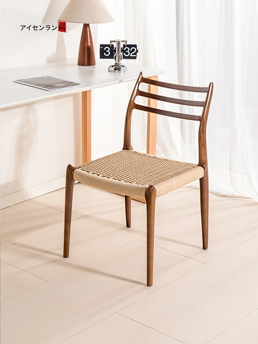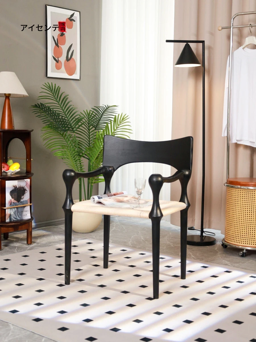 アイセンラント中古実木ダイニングチェア - ウェビングデザインの侘寂スタイル、家庭用クリエイティブシンプル書斎デスク用アームチェア。心地よい座り心地と洗練されたデザインで、あなたの空間に個性をプラス!