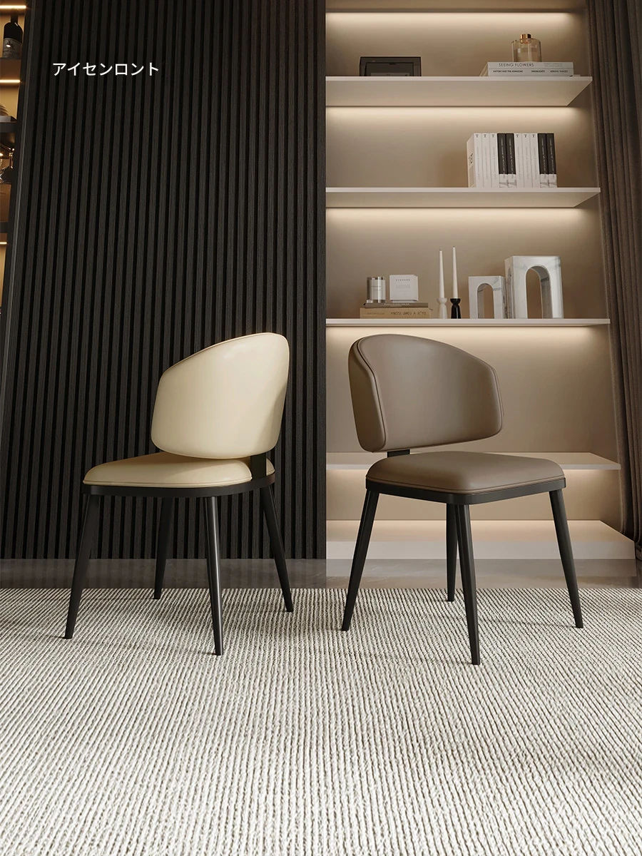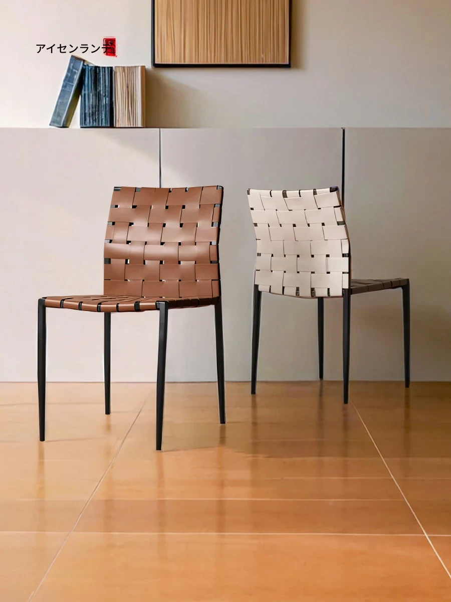 アイセンロン馬鞍革編み込みダイニングチェア - シンプルで洗練されたデザイン、家庭やホテルにぴったりの高級感あふれる背もたれ付き!