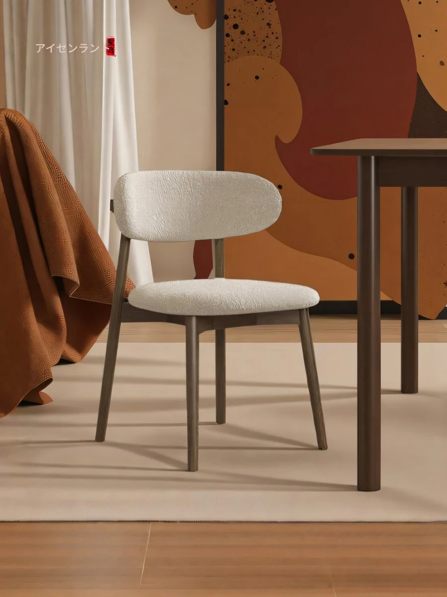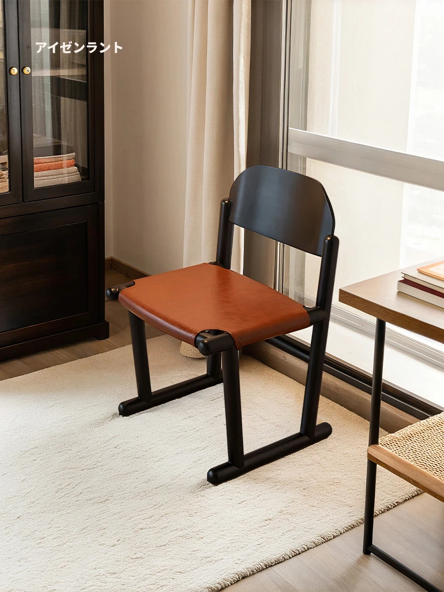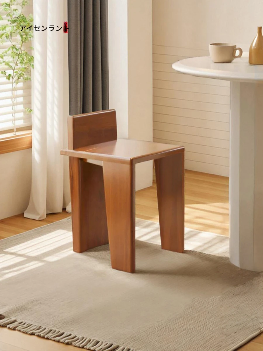 アイセンラント中古無垢材ダイニングチェア - わびさび風のシンプルなデザイン、家庭用にも最適な化粧台スツール。極簡デザインの無垢材背もたれチェアで、心地よい空間を演出します!