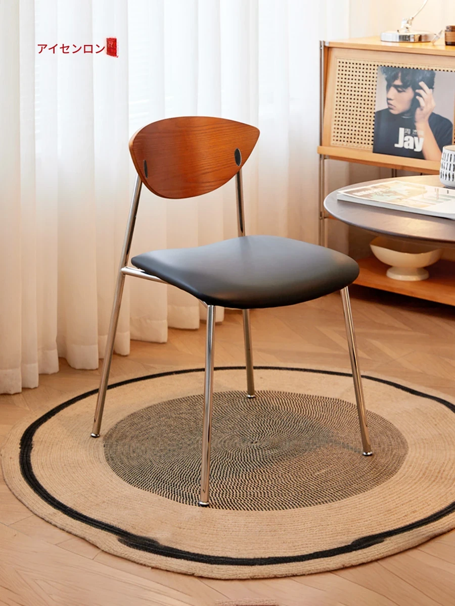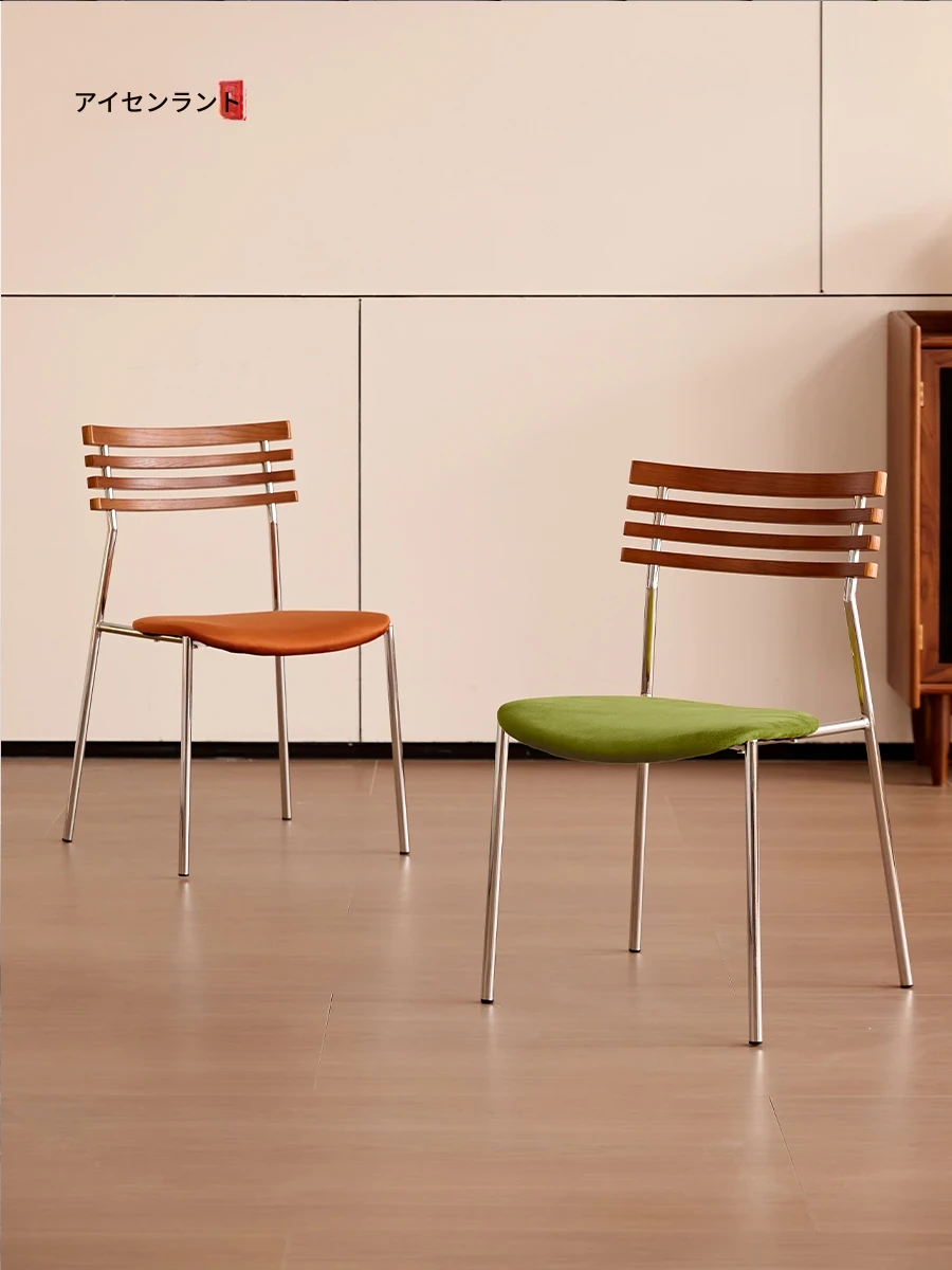 アイセンランテ北欧レトロダイニングチェア|家庭用実木背もたれ付き|中古デザイナーステンレスダイニングテーブルセット|スタイリッシュで快適な食卓を演出!