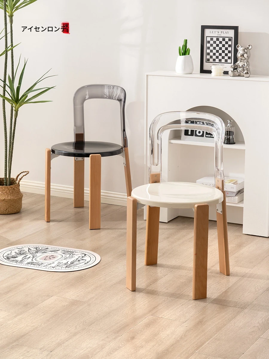 アイセンラントのクリエイティブダイニングチェア|シンプルでモダンな透明バックレスト|北欧スタイルの無垢材使用|カフェやタピオカ店に最適な椅子!