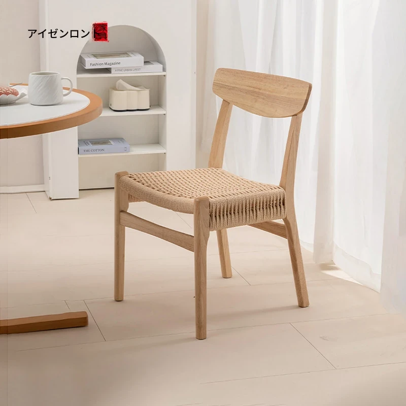 エイサンロント中古無垢材ダイニングチェア|和の侘び寂びを感じるリラックスチェア|民宿にぴったりなロープ編みデザイン|書斎やオフィスにも最適!
