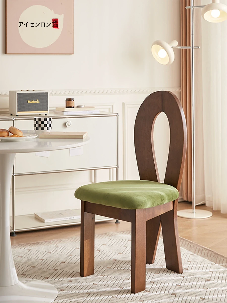 アイセンラント レトロ無垢材ダイニングチェア 家庭用デザイナー人魚背もたれ 化粧椅子 アンティーク侘び寂び風 書斎デスクチェア おしゃれで温もりのある空間を演出!