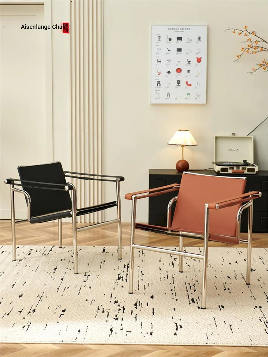 Eisenn Lounge Italian Style Armchair - Vintage Bauhaus Designer Single Chair with Stainless Steel Base, Perfect for Relaxation and Modern Living Spaces