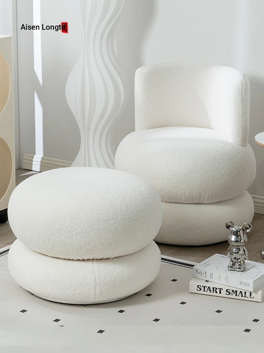 Eisenlongt Single Sofa Chair – Cozy Lamb Fleece Fabric Rotating Vanity Stool for Living Room and Balcony Relaxation