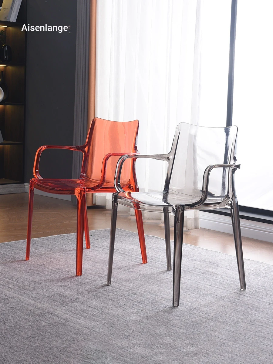 Aisne Longte Acrylic Stacking Dining Chair - Crystal Clear Outdoor Armchair for Home, Perfect for Milk Tea and Dessert Shops, Stylish and Space-Saving Design