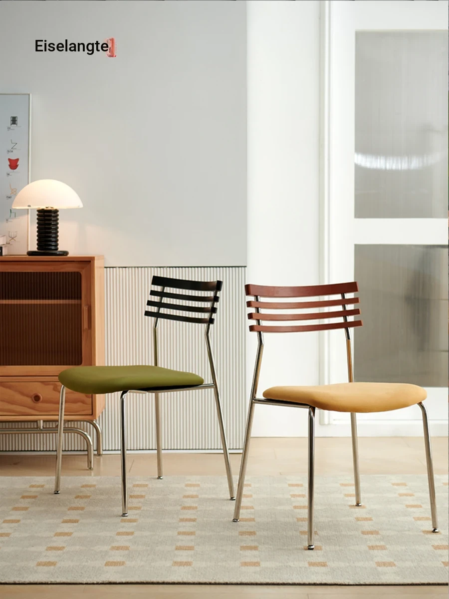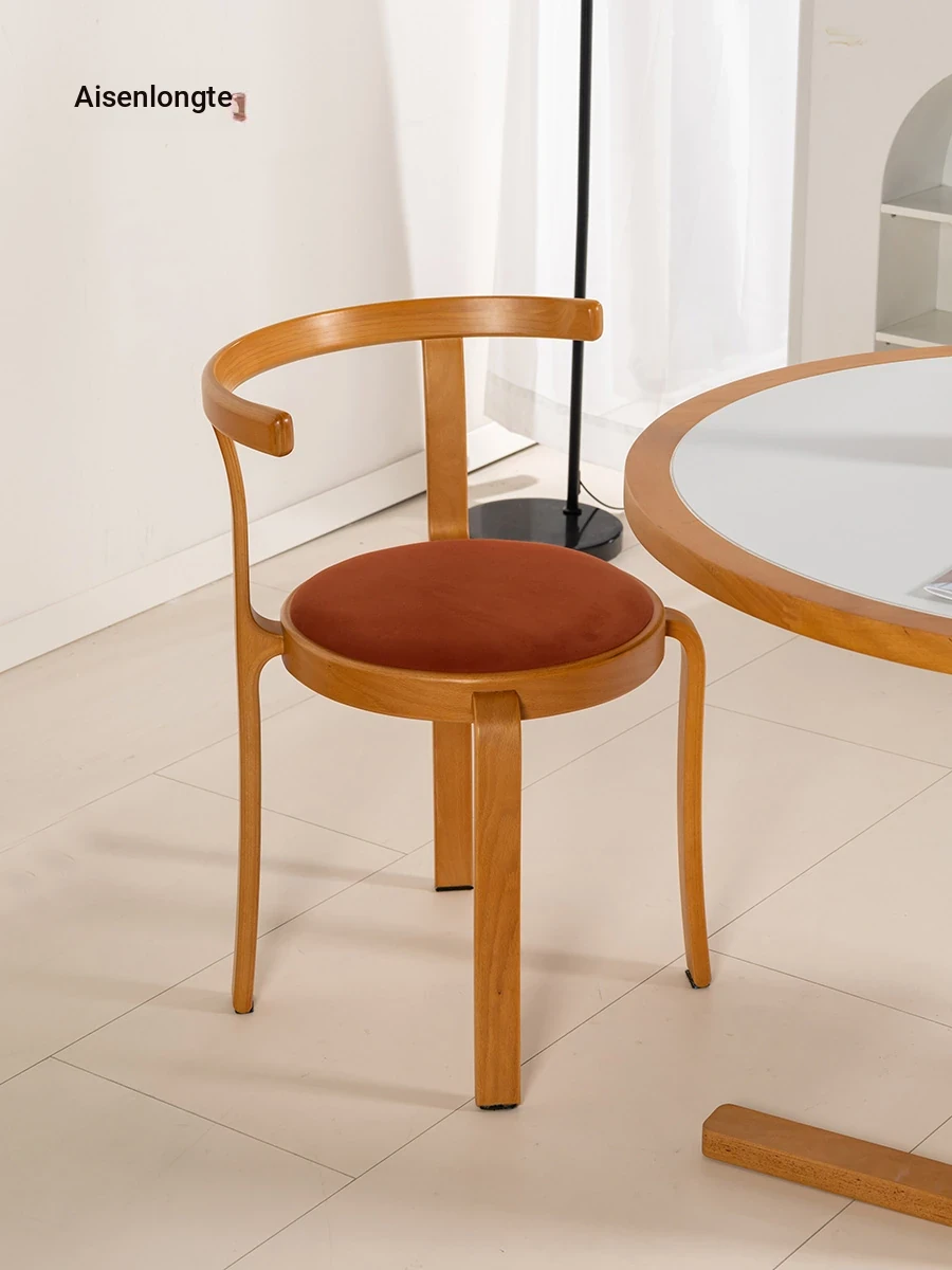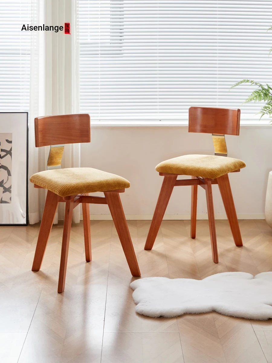 Aisenlante Vintage Dining Chair - Designer Scandinavian Home Furniture, Retro Solid Wood Backrest, French Light Luxury Dining Table Chair for Stylish Interiors