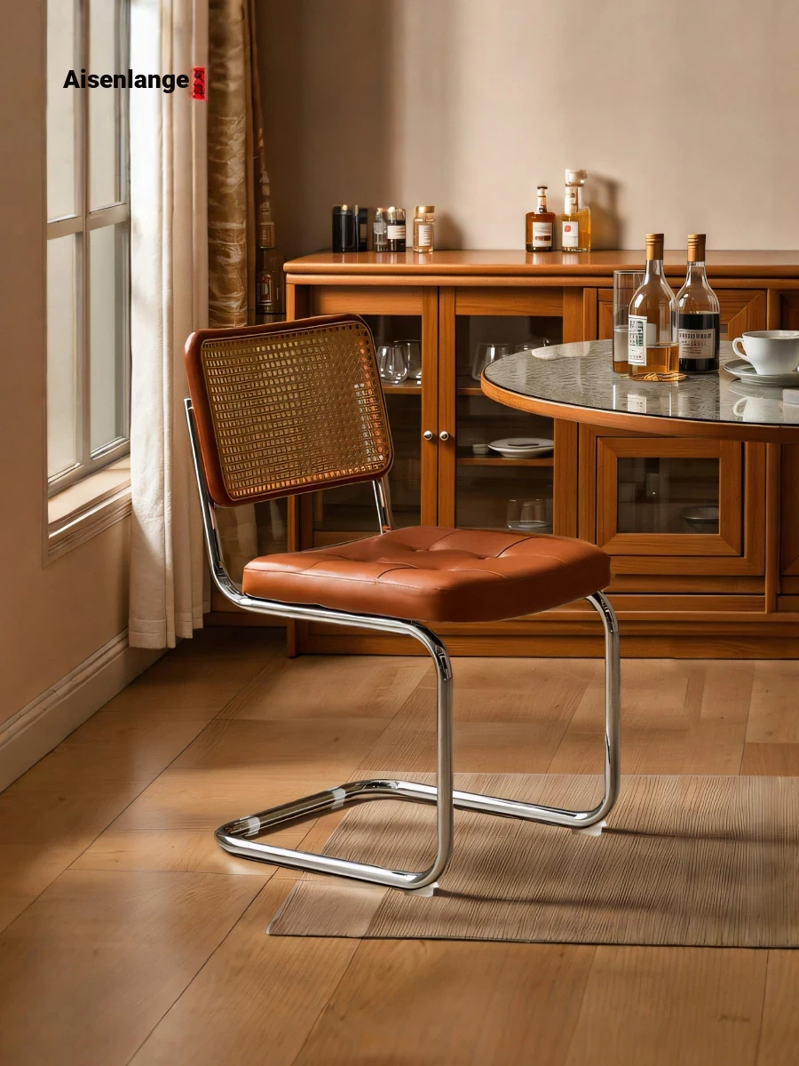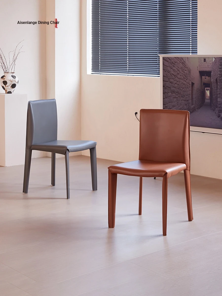 Aisenlang Italian Minimalist Saddle Leather Dining Chair - Luxurious and Stylish Home Design with Ergonomic Backrest for Dining Rooms.