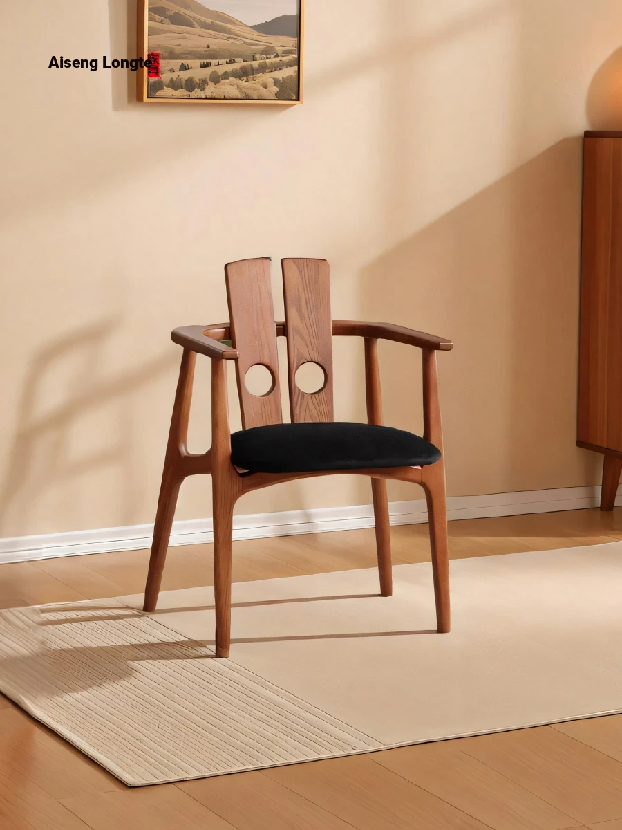 Aisanlong Japanese Solid Wood Dining Chair - Stylish Home Restaurant Backrest Stool with Wabi-Sabi Design, Natural Wood Armrests, Perfect for Your Dining Table