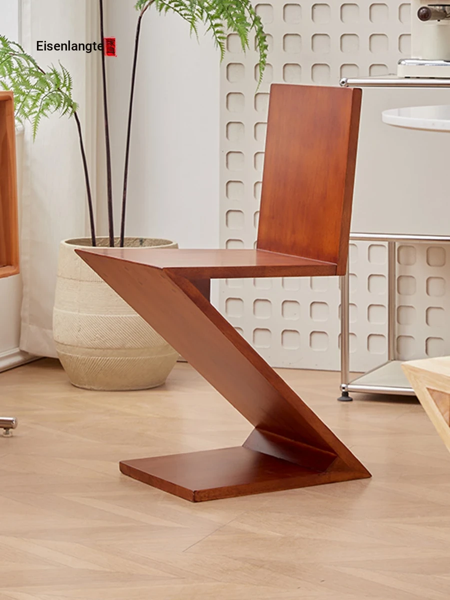 Eisenlong Vintage Solid Wood Dining Chair - Designer Creative Minimalist INS Style, Retro Z-Shape Backrest, Perfect for Home Dining Experience