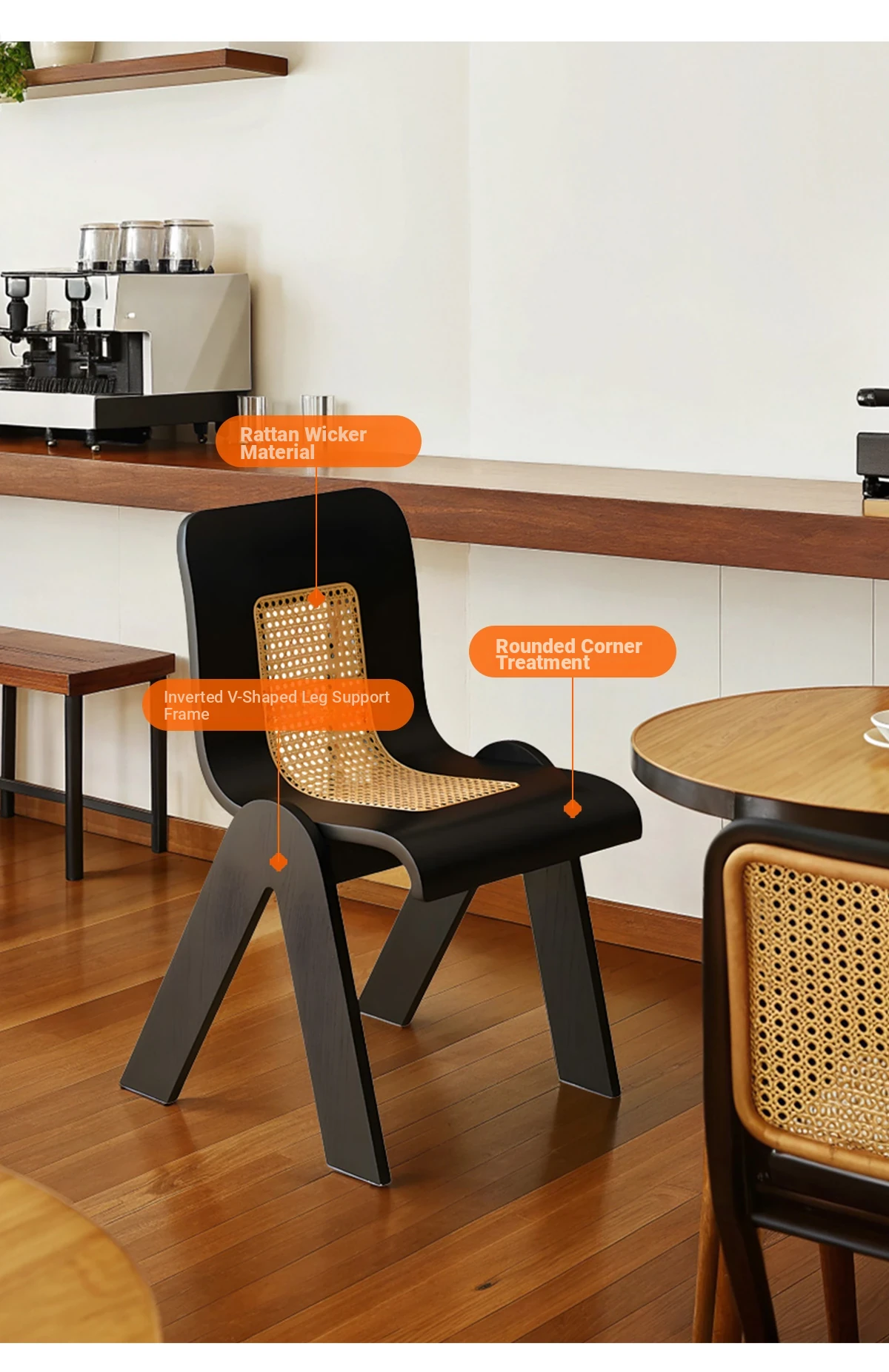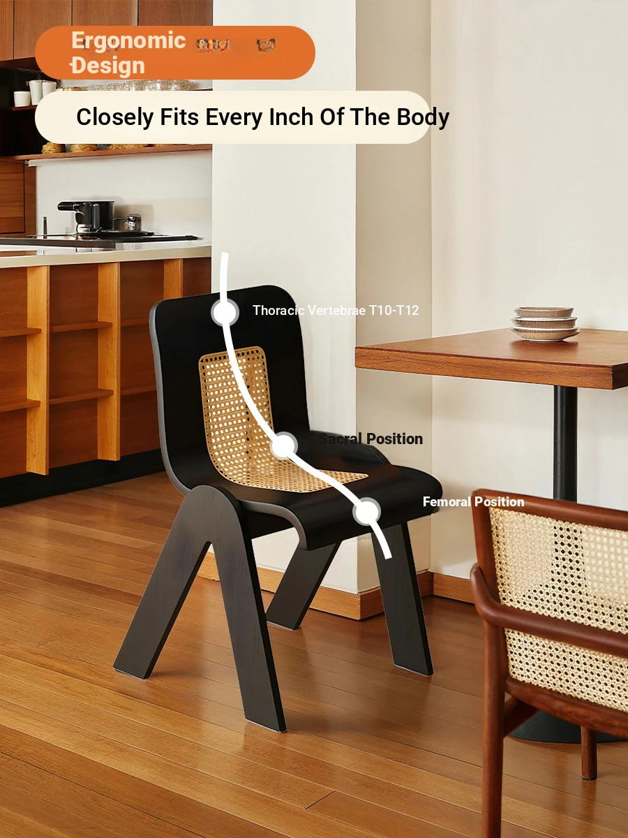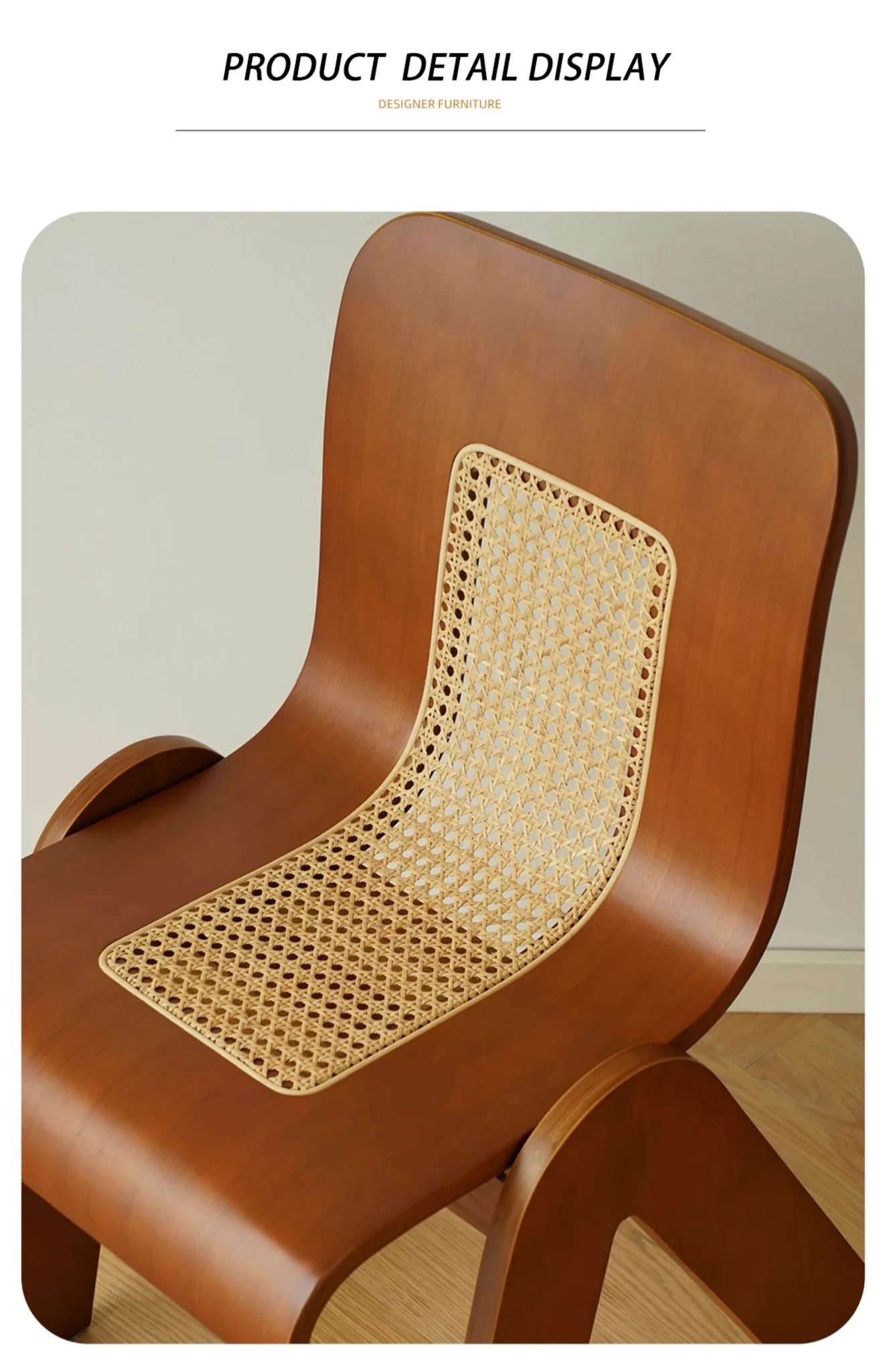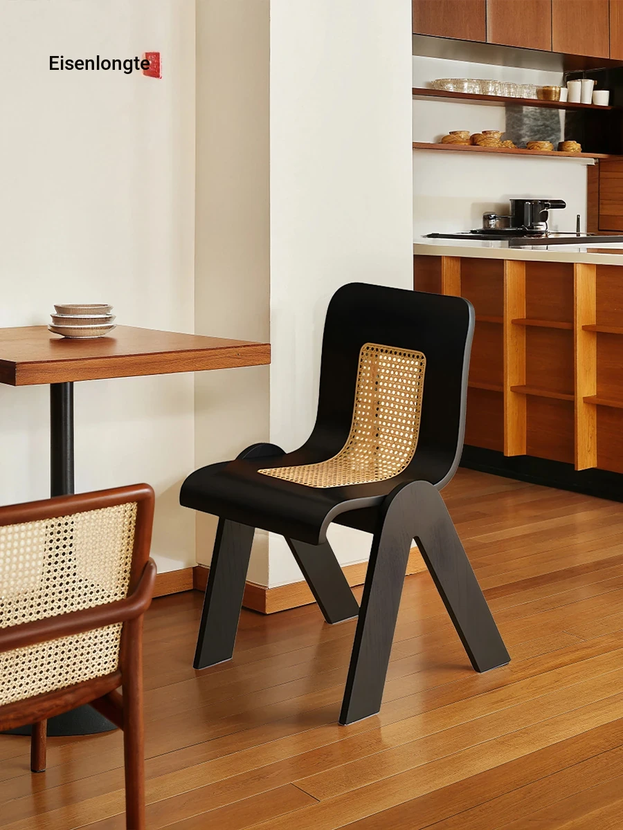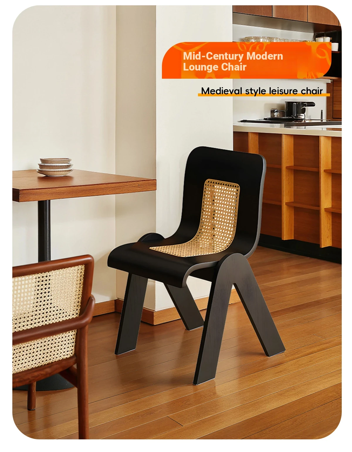 Aisenglong Vintage Solid Wood Dining Chair - Designer Backrest C-Chair, Wabi-Sabi French Retro Rattan Dining Set for Home Use, Perfect Blend of Elegance and Comfort