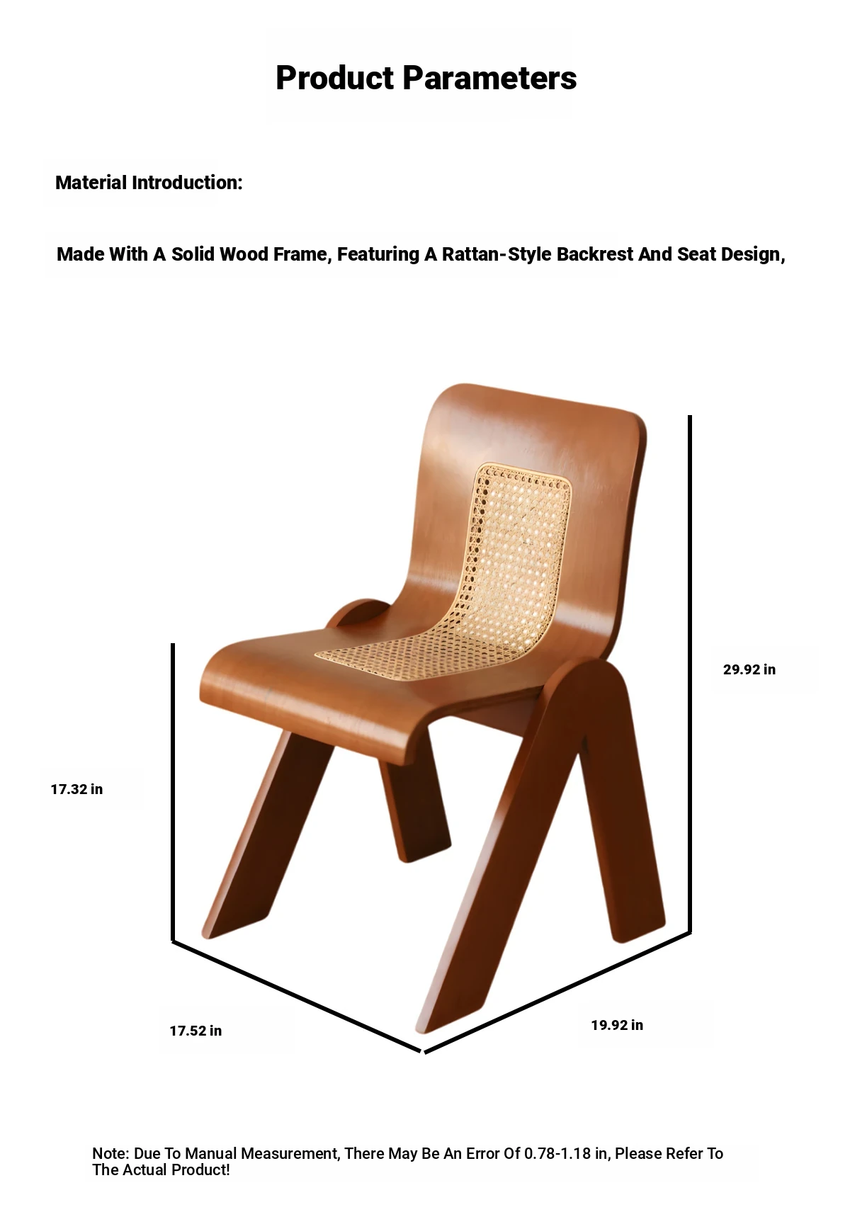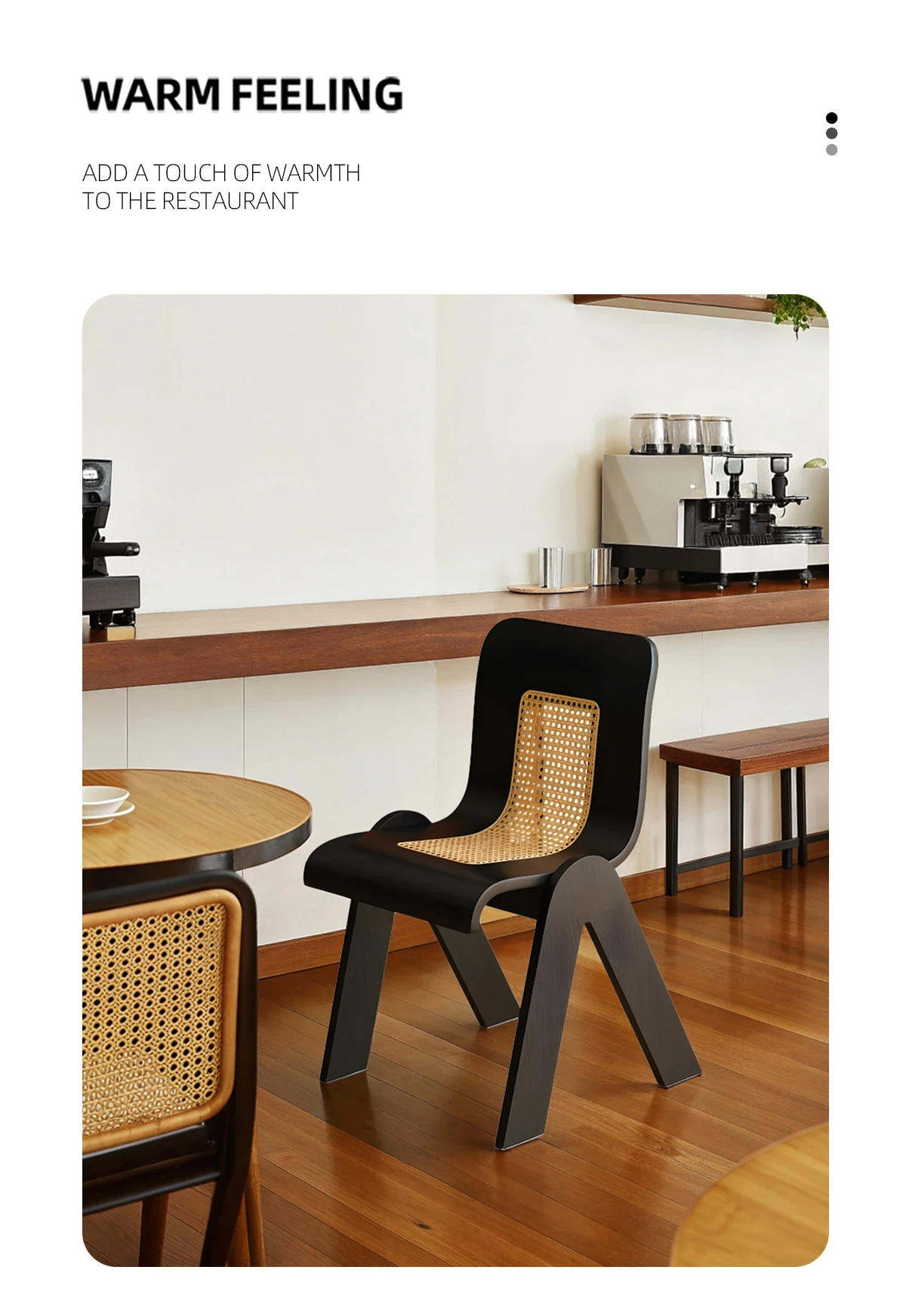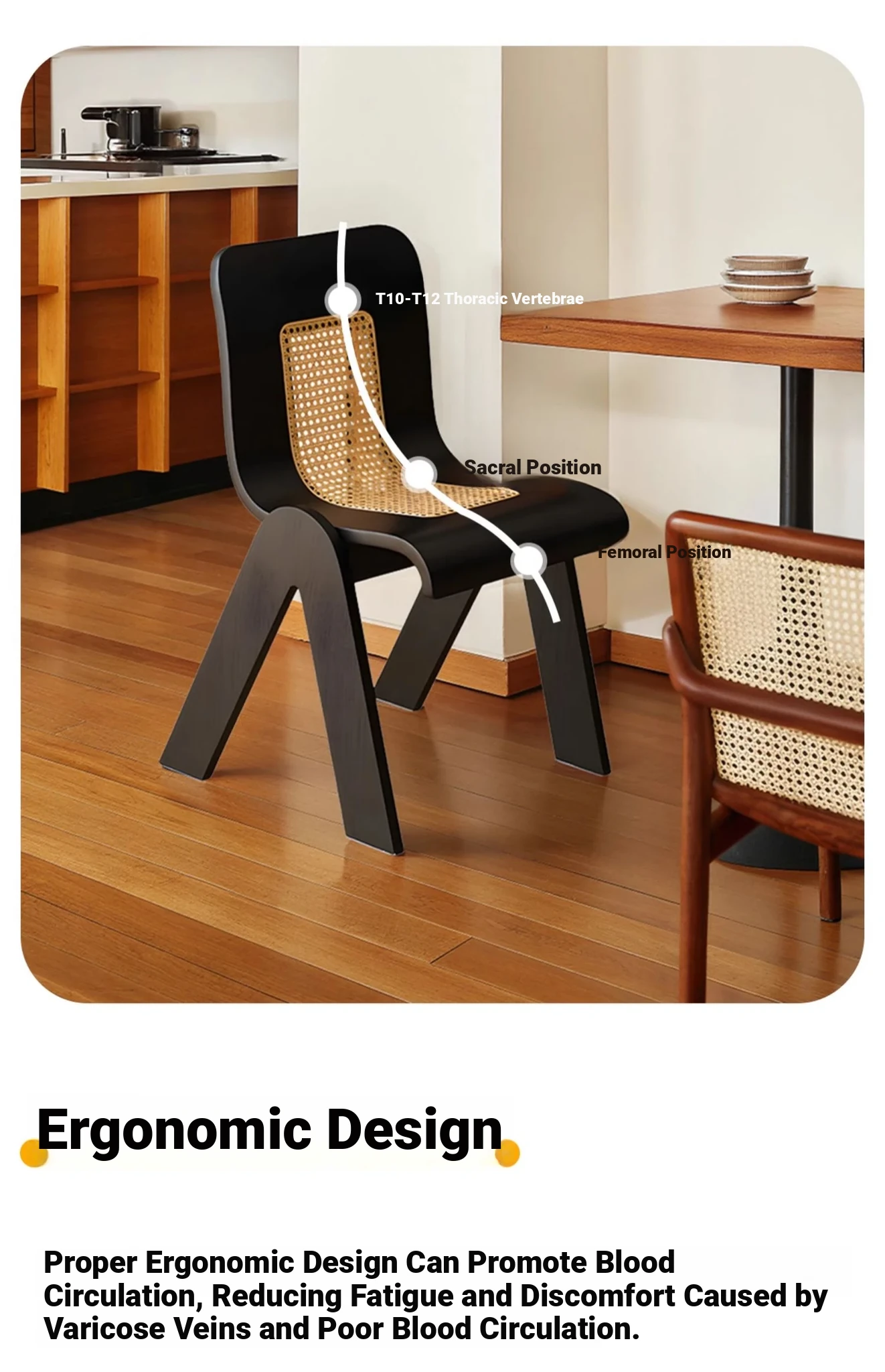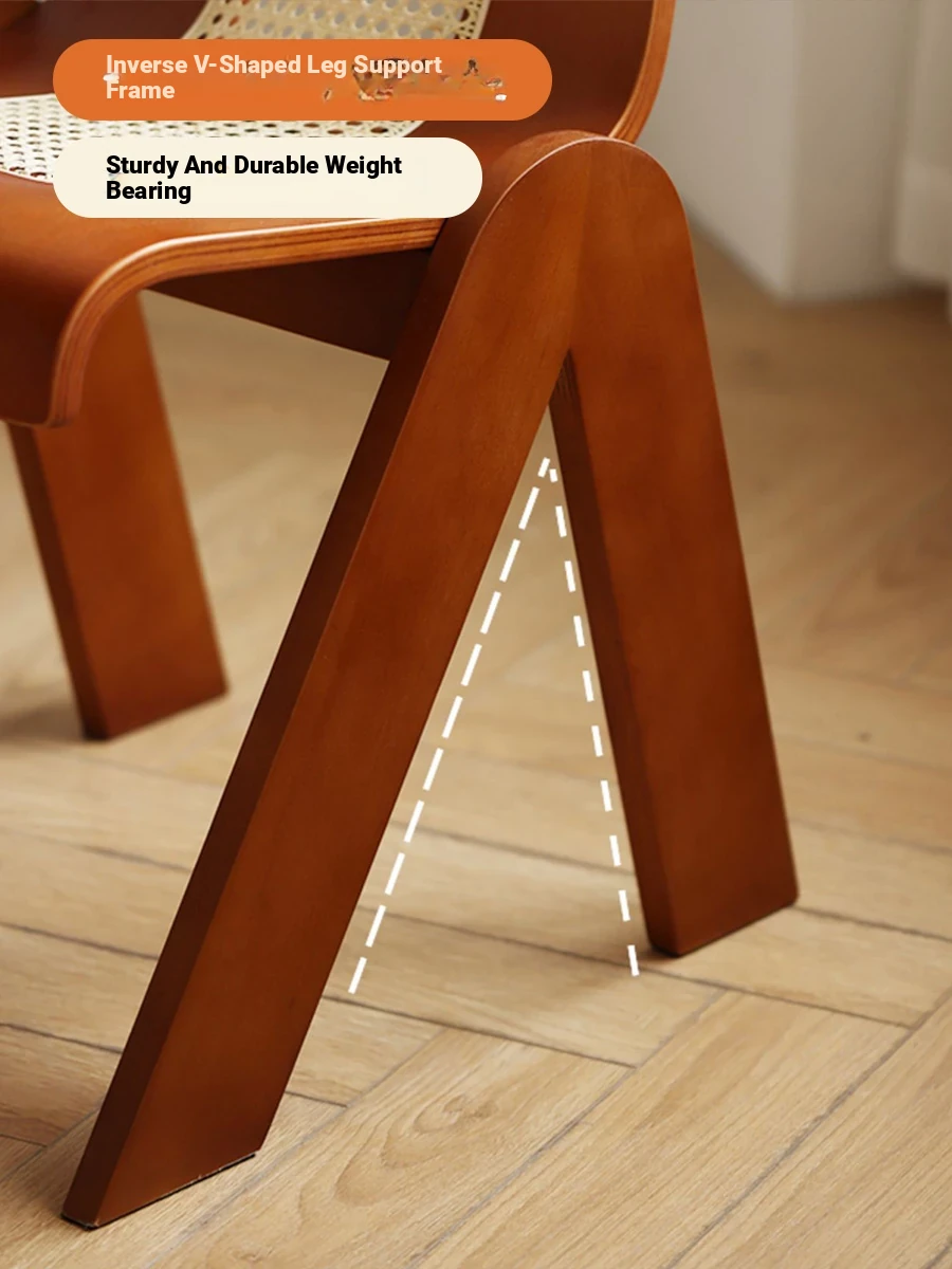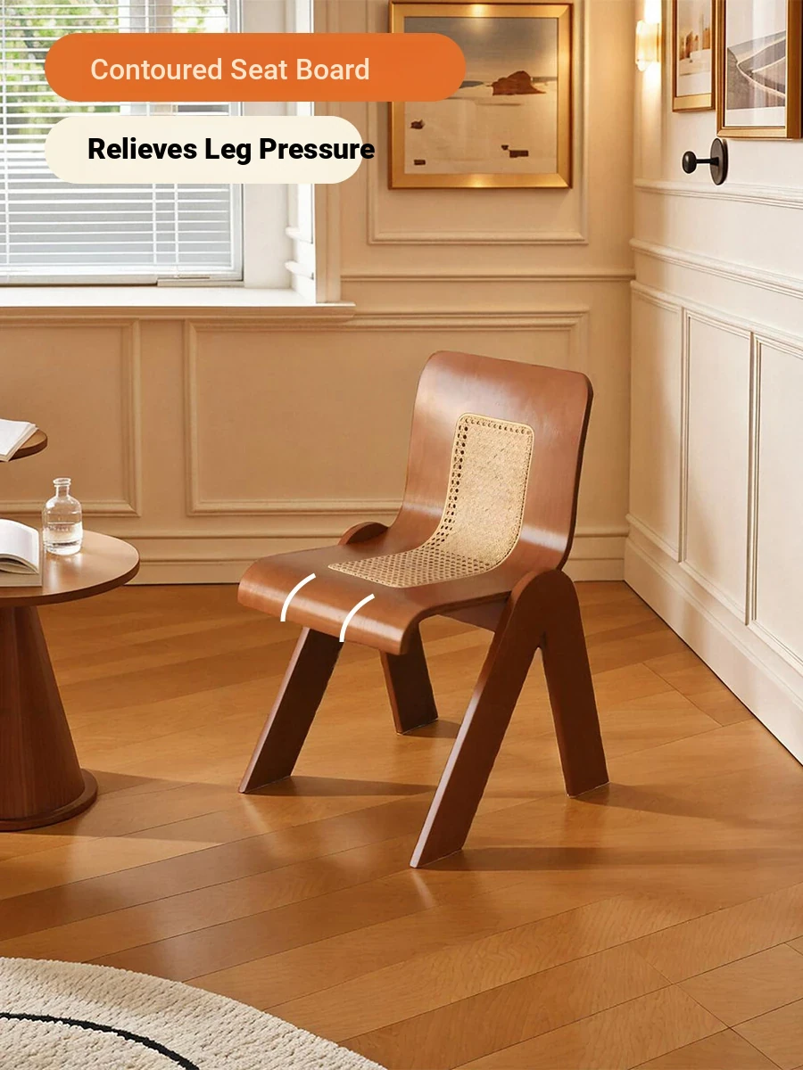 Aisenglong Vintage Solid Wood Dining Chair - Designer Backrest C-Chair, Wabi-Sabi French Retro Rattan Dining Set for Home Use, Perfect Blend of Elegance and Comfort