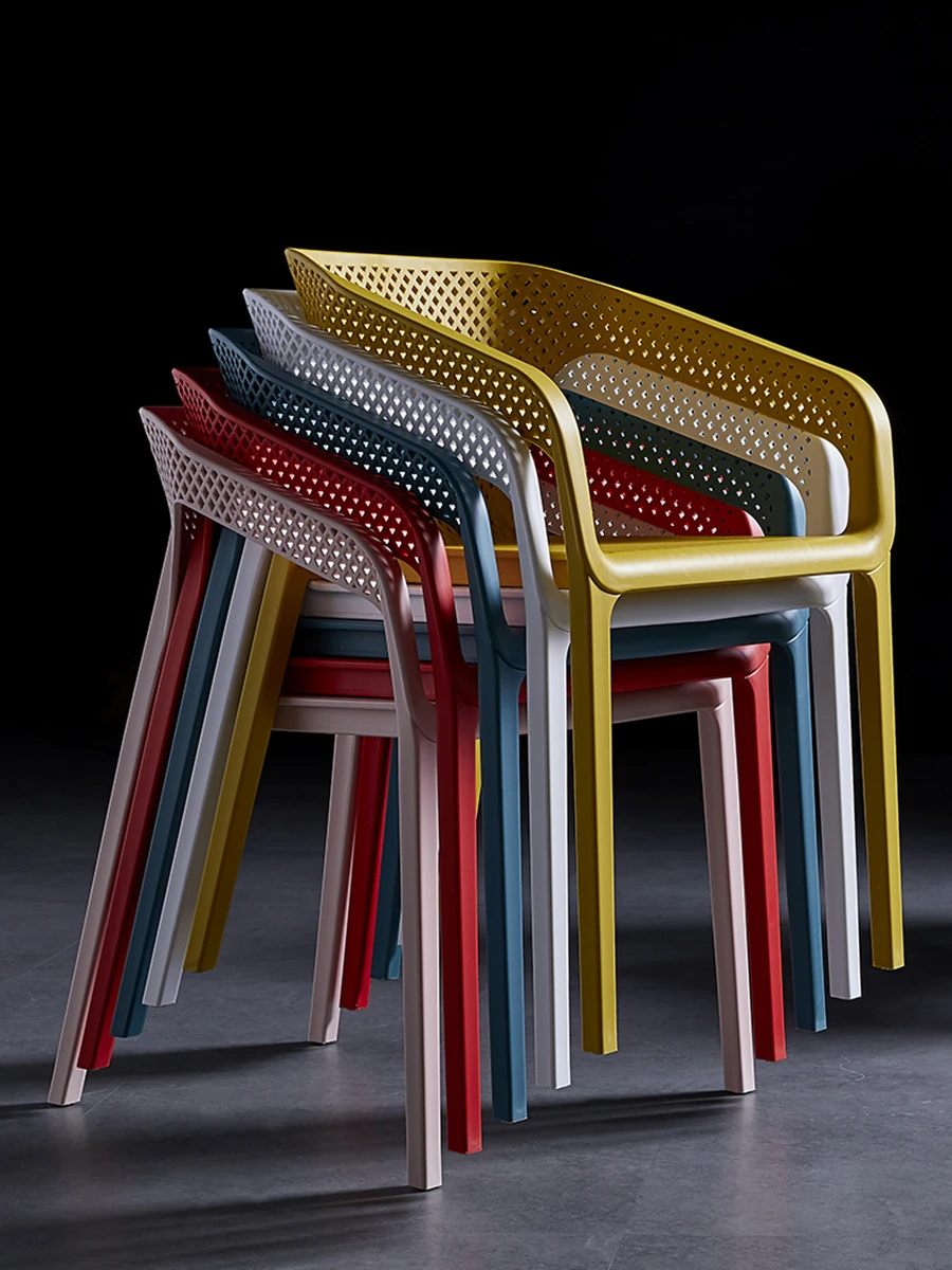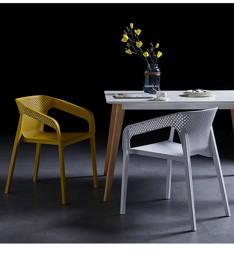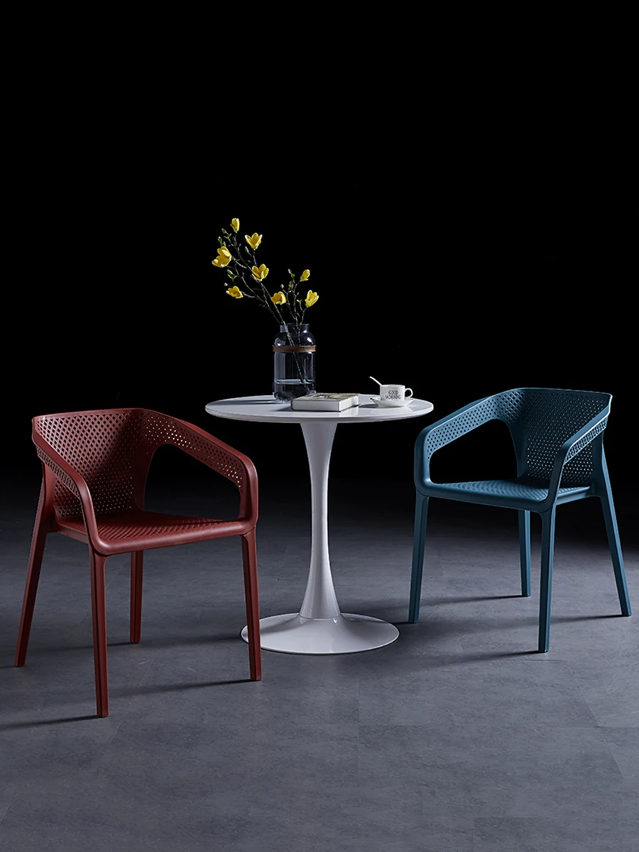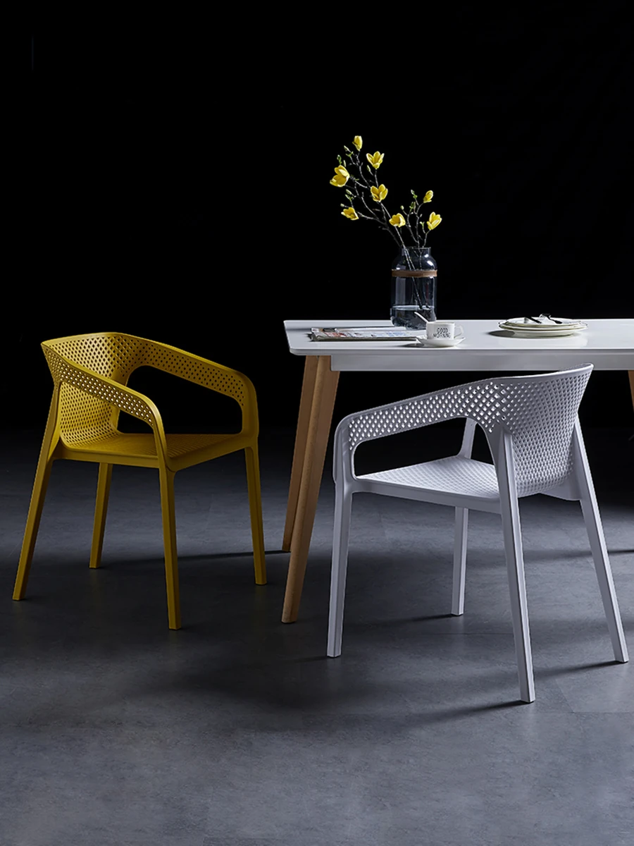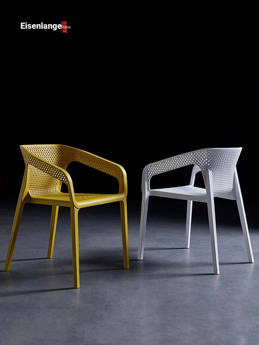 Aisenlangte Nordic Style Dining Chair - Modern Minimalist Plastic Backrest with Armrests, Stackable for Home and Outdoor Use, Perfect for Milk Tea Shops and Meetings