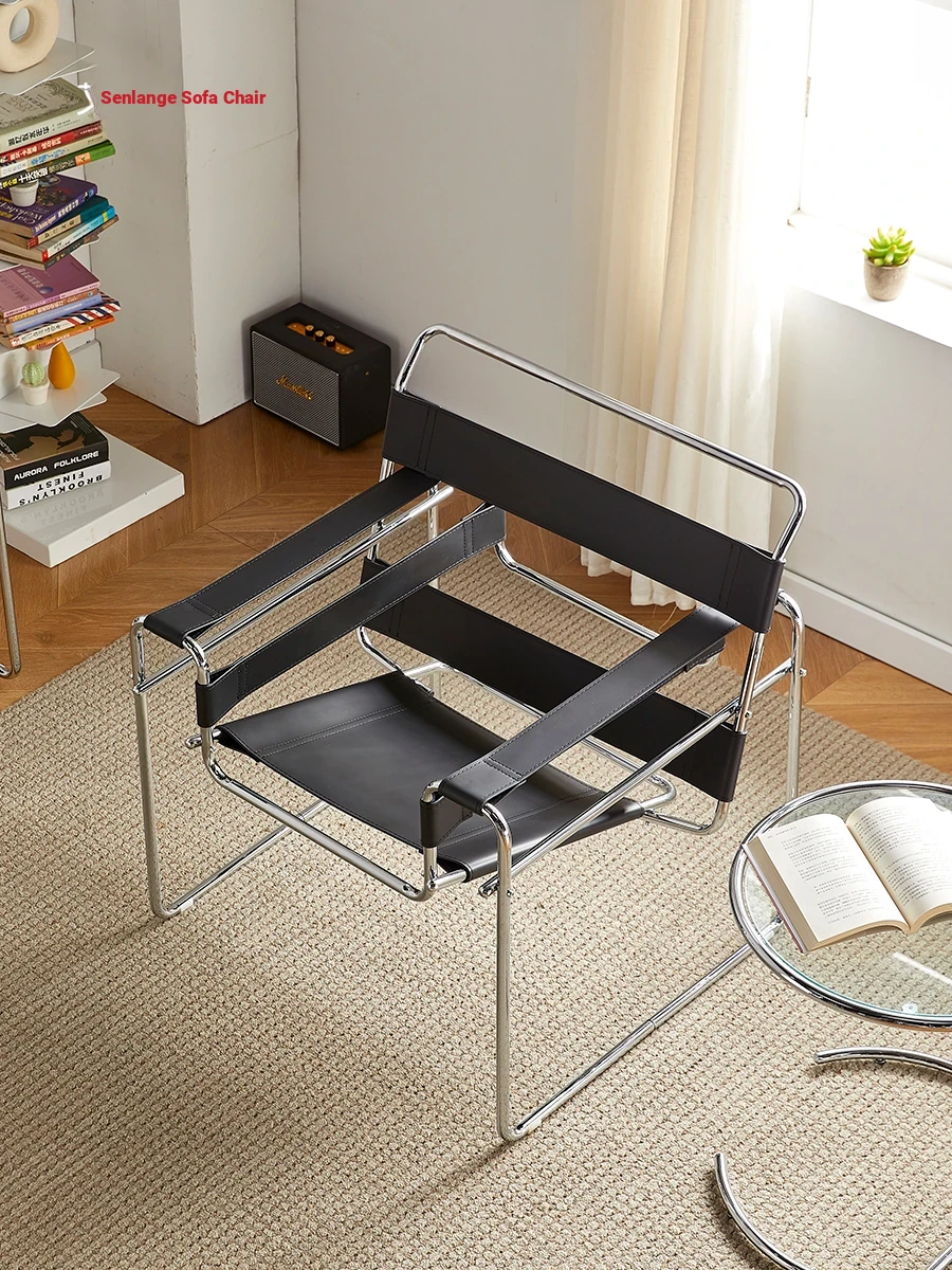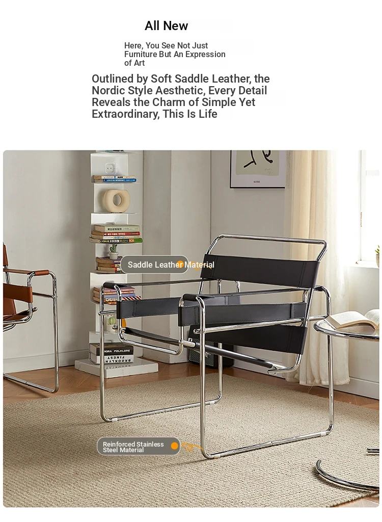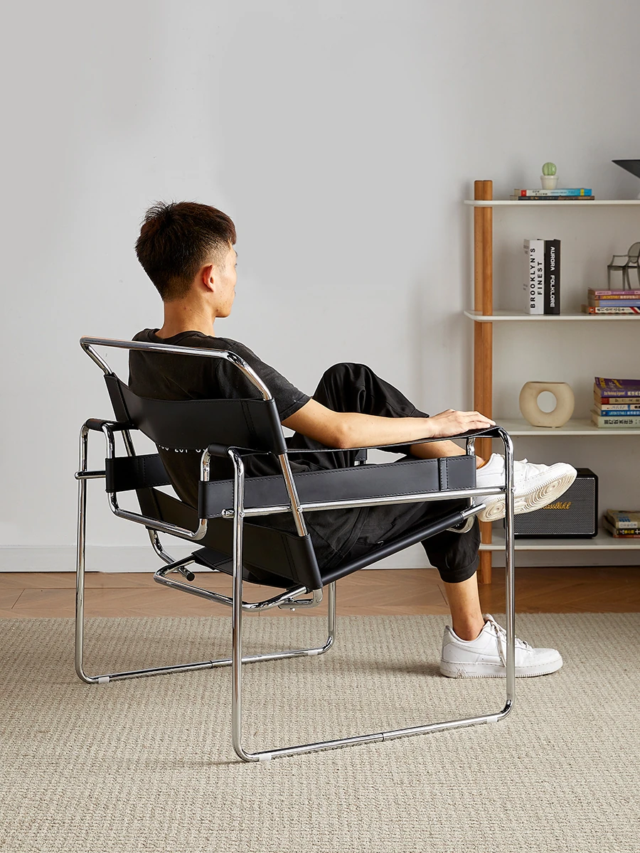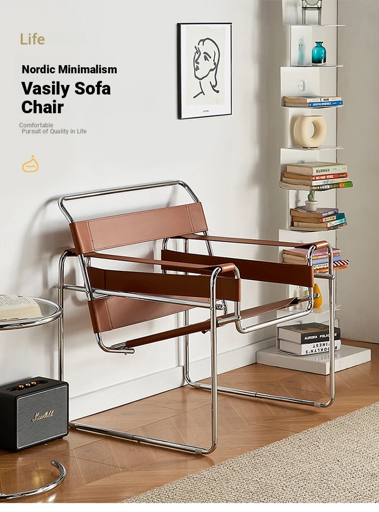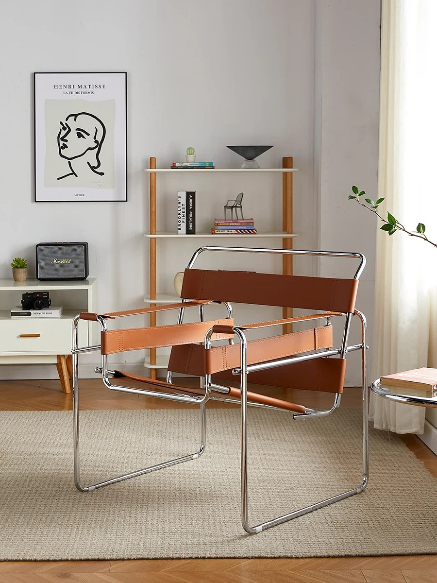 Nordic Designer Vasily Leisure Chair - Vintage Industrial Bauhaus Saddle Leather Sofa Chair for Trendy Photoshoots