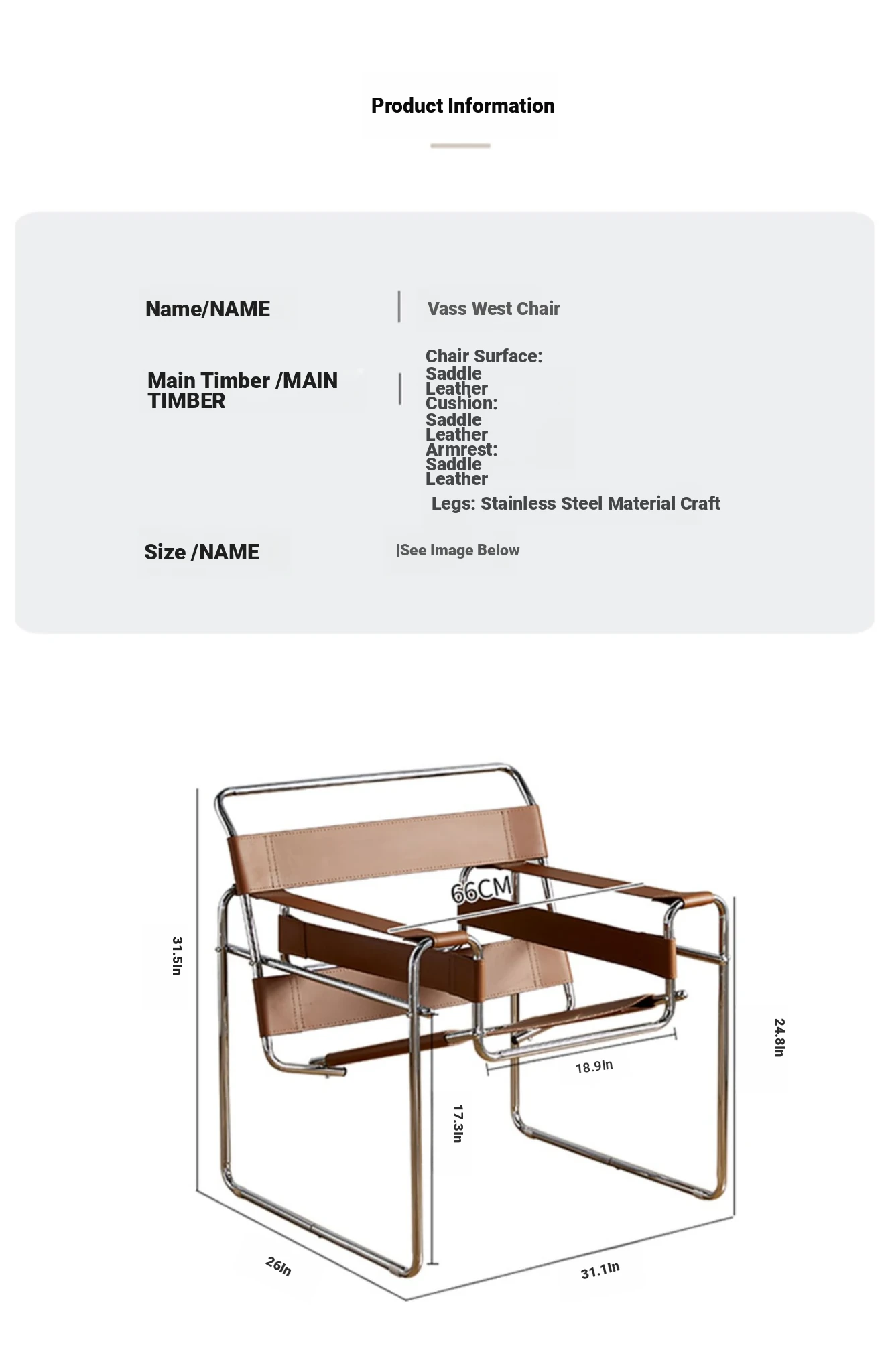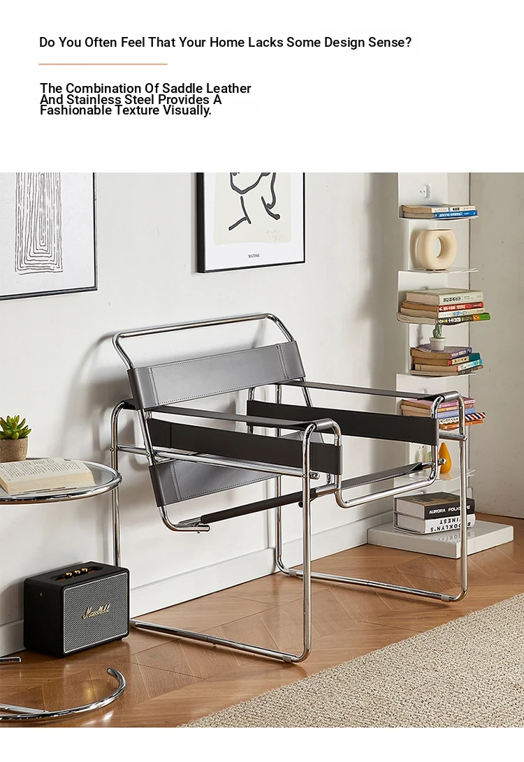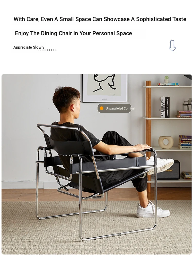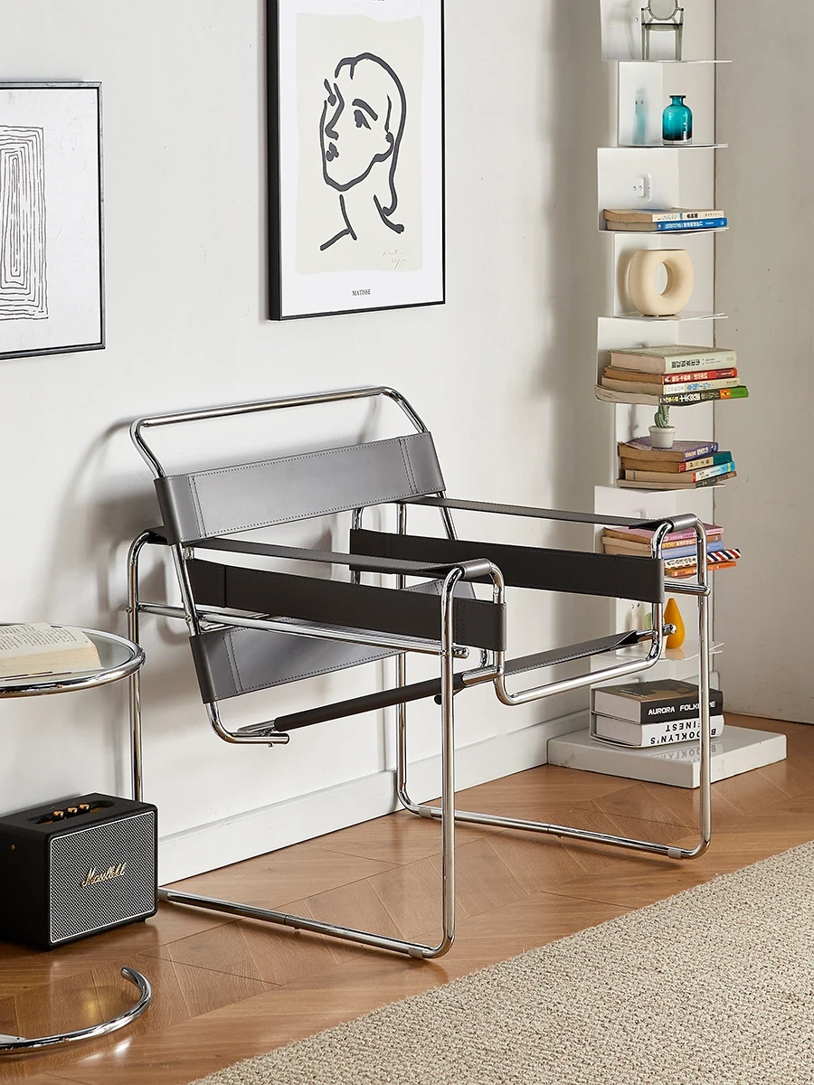 Nordic Designer Vasily Leisure Chair - Vintage Industrial Bauhaus Saddle Leather Sofa Chair for Trendy Photoshoots